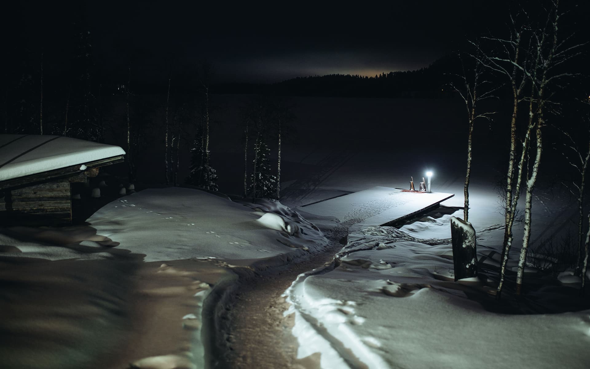 Aloita rentoutuminen perinteisessä savusaunassa, jossa pehmeä lämpö rauhoittaa mieltä ja kehoa. Tämän jälkeen siirry jääsaunaan—ainutlaatuinen kokemus, joka ympäröi sinut virkistävällä viileydellä, herättäen aistisi ja tarjoten täydellisen vastakohdan saunomisen rauhoittavalle vaikutukselle. Saunomisen välissä voit pulahtaa Pyhäjärven kirkkaissa vesissä.