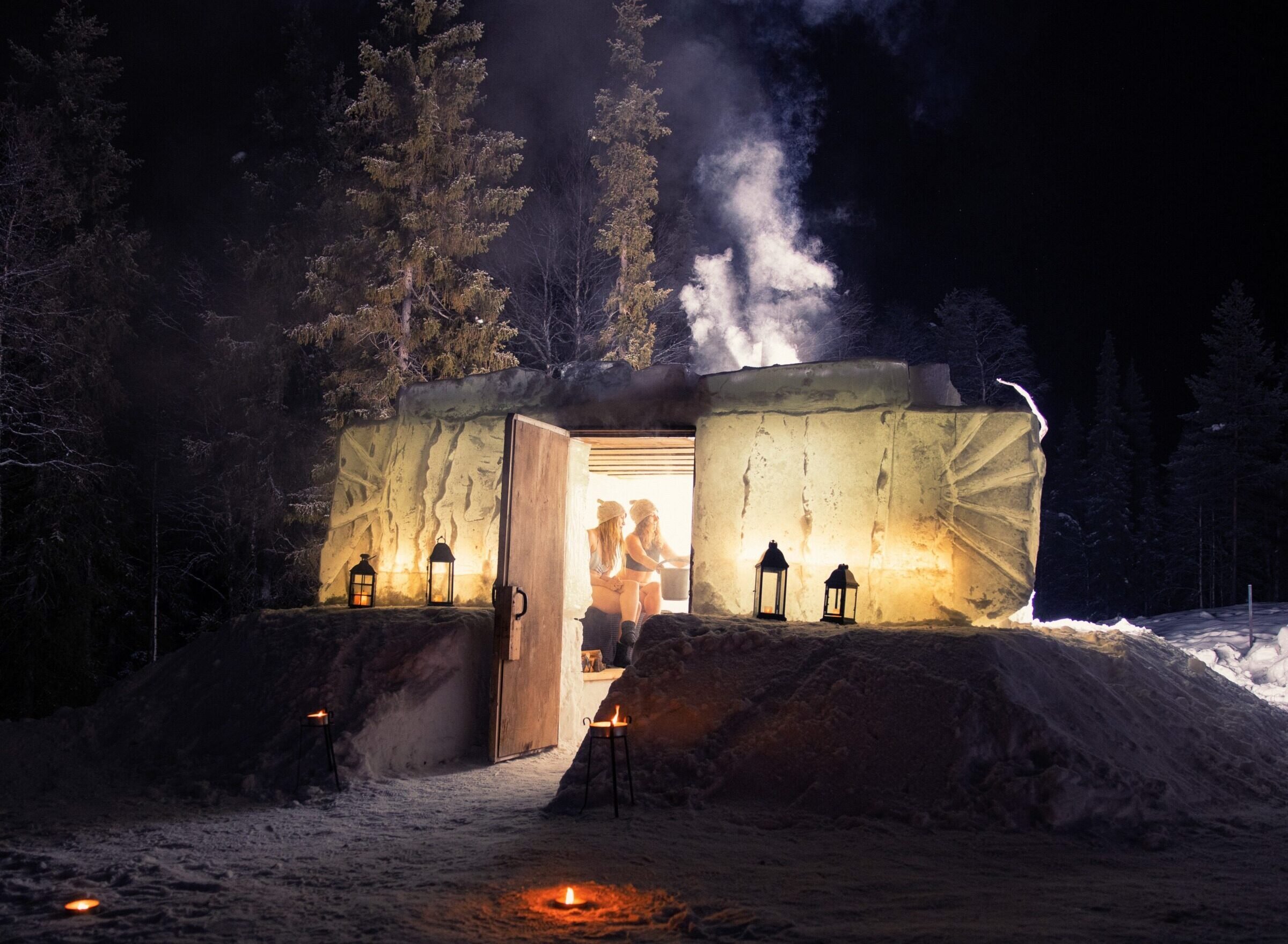 Täydellinen tasapaino rentoutumiseen ja virkistymiseen perinteisen savusaunan rauhoittavalla lämmöllä, jota seuraa jääsaunan virkistävä jäähdytys.